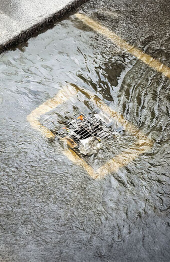 Emergency response for properties experiencing water pooling in yards, driveways, or near building foundations due to blocked surface drains or strip grates.